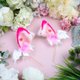 - decorated with rhinestone accents, piercing hoops, heart piercing and removable winged bows