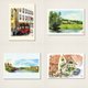 This is a postcard of a landscape painting drawn with transparent watercolor. Finished with offset printing that has beautiful colors and less fading.