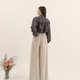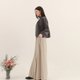 ▪️ 弧形剪接波浪裁片,两道活褶增加垂坠感。