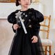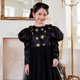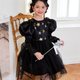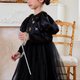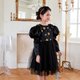这款洋装散发着优雅气息,非常适合各种场合。特别推荐作为万圣节季节的“小魔女”洋装。肩膀的双丝带让人想起肉印,并饰有闪亮的金属金色带子,增添了一种异想天开而又精致的触感。