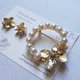 耳环/耳环上装饰有淡水珍珠、珠宝和金花。