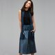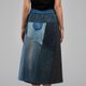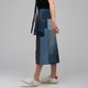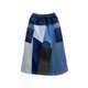 利用回收“三件丹宁”拼接而成,整圈松紧腰身设计,自在不受拘束