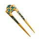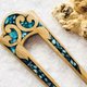 蓝色宝石雕花木质发簪。 材质:木头、树脂、宝石