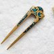 发夹、发簪、蓝色宝石雕花木质发簪、送礼给她