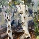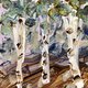 原创油画《桦树与淡紫色天空》抽象纹理迷你艺术微型