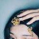 使用多种轮廓的镀金玻璃珠饰串织而成