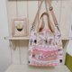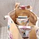 包包主体用日本牛津布,法国兔制作, 前袋身有一个附拉链口袋大小约宽18.5cm*高14cm及平面口袋, 特别取布的花色, 很可爱, 里面也有一个放手机的口袋,大小约宽12.5cm*高15cm,整个袋子同时可放手机, 雨伞,水瓶,存折,面纸....等 ,外出非常便利.