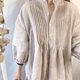 领口利用条条立体压褶 营造下摆自然垂坠度