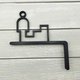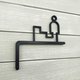 It is a protruding staircase sign with an L-shaped frame that can be attached to the wall.