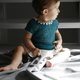 这件衣服是由经过认证的有机美利奴羊毛钩编而成。有机纱线意味着纱线的纤维是在没有人造化学品(化学肥料,杀虫剂和除草剂)的情况下生产的,这使得该服装对环境友好且对皮肤友好,因为纱线具有较少的过敏原。美利奴羊毛纤维比普通羊毛纤维更细,使服装更柔软,无瑕疵和轻盈。