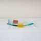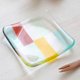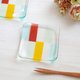 - A small plate of transparent and colorful glass. The colorful glass was cut, lined up, and baked in an electric furnace. It is a piece with a Japanese atmosphere, with bright red and yellow colors in pale and refreshing blue and green.