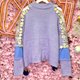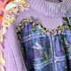 OTT独一无二•Unique粉紫色印花格仔网布刺绣毛衣