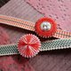 以淡樱色为基底,一圈一圈细腻地缠绕着红、白、嫩绿色的蚕丝线,手工精心制作而成。