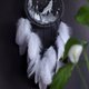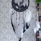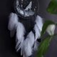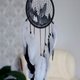 独特的设计:这款捕梦网的特点是一只细致的狼对着新月嚎叫,周围有精心编织的网。黑色、白色和灰色形成鲜明的对比,可与任何装饰相得益彰。