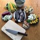 KATURA Santoku是一种多功能的切割工具,能够处理大多数基本的厨房切割任务。 Santoku在日语中意为 &三种美德,能够进行切片、切丁和剁碎。 它的刀刃形状比西方厨师刀短,但比西方厨师刀宽--Santoku的优点是重量轻,易于操作。 KATURA VG10不锈钢刀片比一般的刀片更轻更薄,这也使其更容易处理和操纵。 专业厨师会选择Santoku刀片来处理细致和更多的准备工作,以提高工作效率。