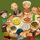 新年-手绘插画万用卡贺年卡/明信片/卡片/插画卡-团圆年夜饭
