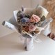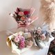 ◆采用进口康乃馨永生花、索拉花、不凋绣球花、、满天星、水晶花、尤佳利叶等干燥花材制作而成。