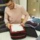 BeeNesting蜂筑压缩收纳包通过压缩拉链可快捷缩小衣物50%的体积,节省您的旅行箱空间和打包时间,极简的外观保持功能和美学的平衡,独特的分区设计可同时收纳服装类(干净、脏衣服)、鞋类、毛巾等,精巧的尺寸可适应16-30寸大小的行李箱,便携把手可挂放在行李箱上。超强的防水尼龙材料即可收纳潮湿衣物,也可让产品使用多年。