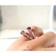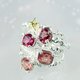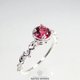 将鲜艳的粉红碧玺,镶嵌于细致的唐草纹戒指上。