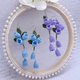 Dangle earrings, Crochet flower earrings, Bell earrings, Blue earrings