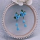 Dangle earrings, Crochet flower earrings, Bell earrings, Blue earrings - 耳环/耳夹 - 棉.麻