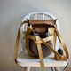 优雅“皮蝴蝶结”时髦质感展现,强韧牛皮制作袋身与圆形底部,背带可任一调整短背带或斜背,