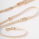 ●侧边贴心设计了D型五金扣,能轻松挂上拾便袋、折叠水盘等外出必需品,让遛狗过程更加省心。搭配舒适握把或真皮握把,提升手感与牵引稳定性,为每一次牵绳的使用增添细腻体验。