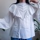 白色棉质衬衫,爱德华风格,泡泡袖,带蕾丝的气球袖棉质衬衫,套头棉质衬衫