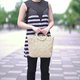 使用约3cm宽的条状编织物共18条,斜向编织成包包,虽然具有高级感,但因设计简单,日常使用也非常实用。