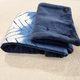 于是设计出带着果决风格,富有年轻化的简洁俐落,作品以不等高的90度转折构图,蓝染出多色阶,展现古典的功力与带现代感的巧思。