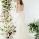 孤挺花(Amaryllis),花语为追爱与坚持。细致的网纱抓褶形成V领效果,搭配内层的桃心领呈现两种视觉效果,整件采用细致纹路的蕾丝和轻柔网纱,后背上身两侧拼接如花瓣的蕾丝饰片,会随着身体摆动,营造出温柔优雅的穿着效果。