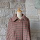 棕色系的千鸟格纹,搭配复古金色钮扣。