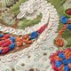 ▲喀什米尔靠近喜马拉雅山,为了对抗特殊的酷寒气候,水煮羊毛是喀什米尔利用当地自然环境发展出来的一种细致的工艺, 当地海拔高,水的沸点低,早晨在太阳上升时,将羊毛制品,放入融化的高原雪水中浸泡,之后加热沸煮。到了傍晚太阳下山时,再把羊毛制品在月光下晒,经由繁复工续后的产品, 不但可以清除掉一些杂质,羊毛产生收缩,纤维之间更加地紧密,最后经由妇女手工编织及刺绣,呈现一件件颜色及绣法独特的织品