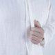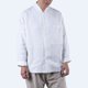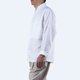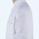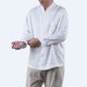 口袋立领衫试图诠释西式衬衫与东方上衣对“合身”的定义,所以本款穿着感受是宽松舒服的,视觉效果是正式高雅的,设计师在领片形状加入适当弧度而有了东方味,中间开襟采用衬衫的扣子穿脱,外观以直线门襟修饰,只留第一颗与最后一颗扣子外露更显内敛品味。