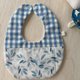 浅灰色布底上有深浅蓝色系的叶子、白色小圆花点缀其中,搭配同属蓝色系格纹布面作对比配色,不会单调又活泼。