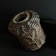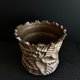 手工拉坯成形、手工雕刻纹理,底部有排水孔,高温烧制而成。