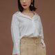 Malwine 夏装系列 素白露肩衬衫 尺寸 M 材质 棉100% 简约细致,轻松妩媚。(备注:商品为上衣,短裤需另购。model身高170cm 体重50kg) 超逸现实,走入梦幻⋯ 自古温柔文人多寄情于艺术世界,其中一路的绘画风格:“没骨”因而产生,舍去墨线勾勒的拘束,纯以色彩形塑,捕捉飘渺的光线,像是在氤氲中观赏花朵,甚至悠懒妩媚。这系列的Malwine以风衣式的阳刚结构 ,对上“没骨”的浪漫意想,在看似在冲突中游走,却是悄然从容。