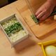 将隔板较宽的底座抵住折折盒 2 系列两侧,向下压至盒底固定,即可依照个人份量需求分隔。
