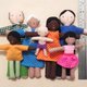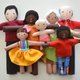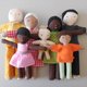 Families are composed of seven dolls; grandmother, grandfather, mother, father, dauther, son and a baby. All are handmade and their faces are hand painted with non-toxic paints. So your family set could wear different colored or patterned fabrics than the displayed on the photos.
