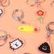 生活需要来点疗愈小物 可爱吊饰随身携带 随时带来好⼼情~ 可当钥匙圈或包包挂饰 透明压克力材质 双⾯印刷图案 尺⼨:约 5.5 x 3 cm 材质:压克⼒、⾦属扣环 产地:台湾设计制造