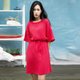 (由于红色比较难调准,所以不同显示屏可能显示的艳度会有所区别,此款本身还是比较红的,不过市场上这个红色的面料是比较少的,很衬肤色。衣服附赠一条同面料细腰带哦~