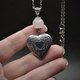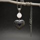 心形小盒项链。玫瑰石英奖章。复古风格的不锈钢宝石小盒坠子。巫术首饰。送给她的珠宝礼物。