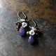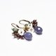 Drop-shaped purple gray beads are sapphire agate. The oval shape has a polyhedral cut.