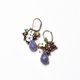 Earrings made of sapphire agate, garnet, florets of white pearl oysters, moss agate, and small ethnic bells.