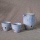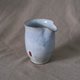 - 淡蓝- 茶海、公道杯 以陶土拉坏成形,淡蓝色微亮釉面,边缘透土色,釉面偶有褐色斑点。