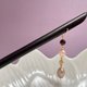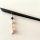 直径8-9mm的天然淡水粉色珍珠携红色石榴石和金色银杏叶形成一步一摇的环配叮当之势,纱织小姐将其连缀到打磨光亮的黑檀木发簪之上,打造出优美柔韧的古典国风之美。发簪长度约18cm,就这样在你的云鬓发髻上环配叮当,是配汉服和旗袍的绝配头饰,让你在举手投足之间流露出美好的古典气质。