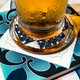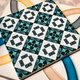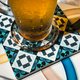 白陶制吸水杯垫;表面覆以金门古厝常见的彩瓷花砖图纹为设计元素。