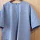 **【 圆领棉麻落肩上衣/ 蓝直纹 】**