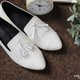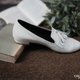 米白色尖头流苏乐福鞋 NT2580
