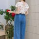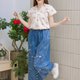 刺繍柄を施した信毎晒ストーンウォッシュコットンパンツ。